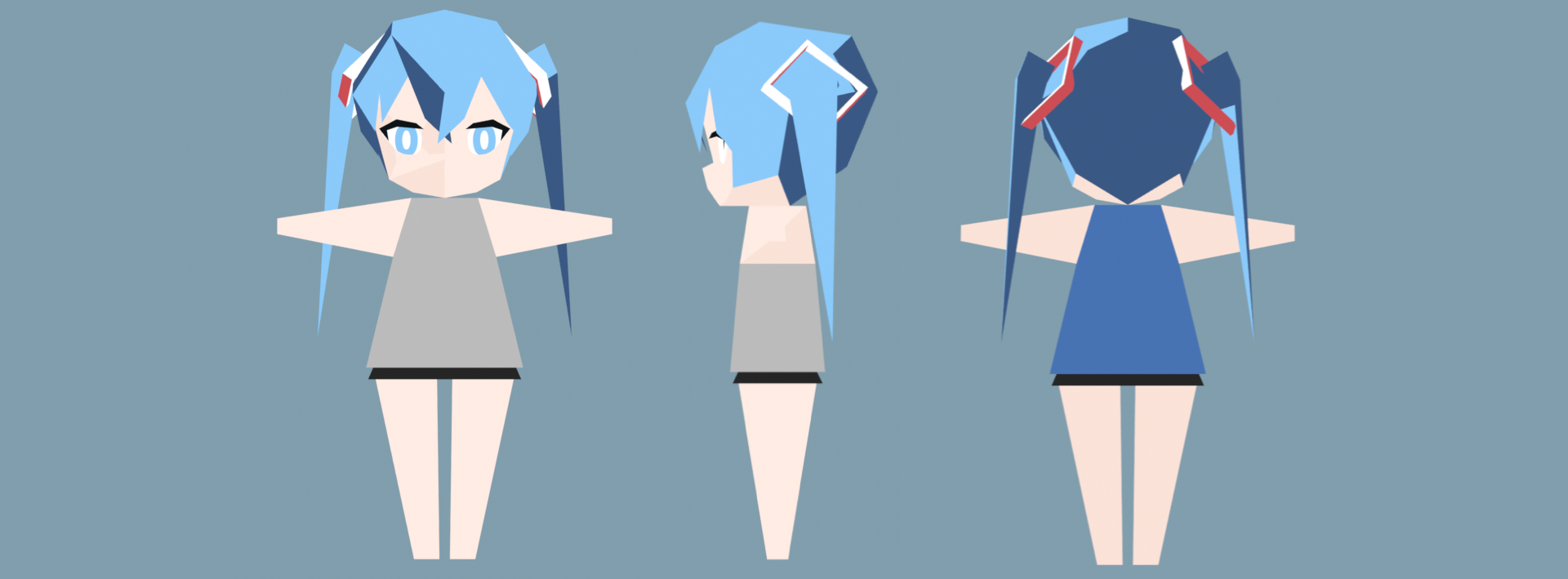 今回は「ローポリ初音ミク」をテーマに、Leeさんのローポリモデルを参考に制作を進めました。