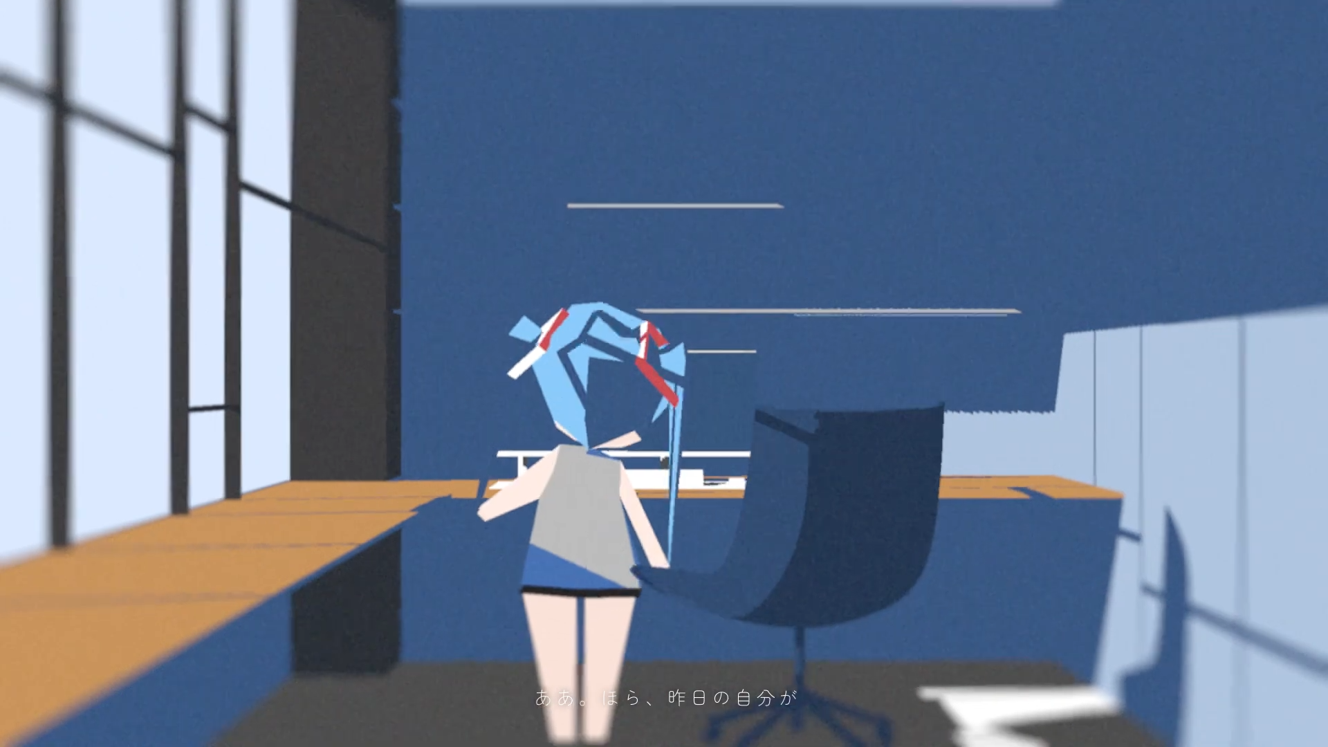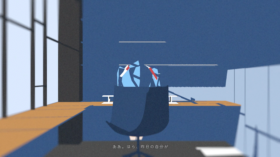 「空白の過去で呆然と つぶやいた言葉は 今に巡り巡ってくる」という歌詞のシーン